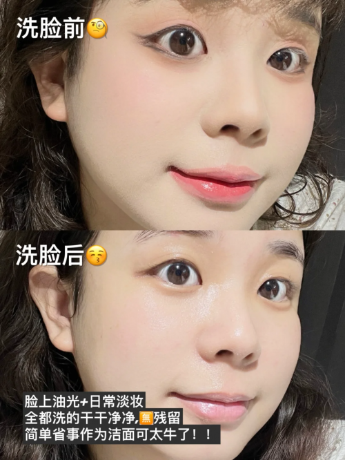 还能卸淡妆:日常防晒+隔离+睫毛膏,直接用它洗一遍就干净,省了卸妆步骤,皮肤负担更小。