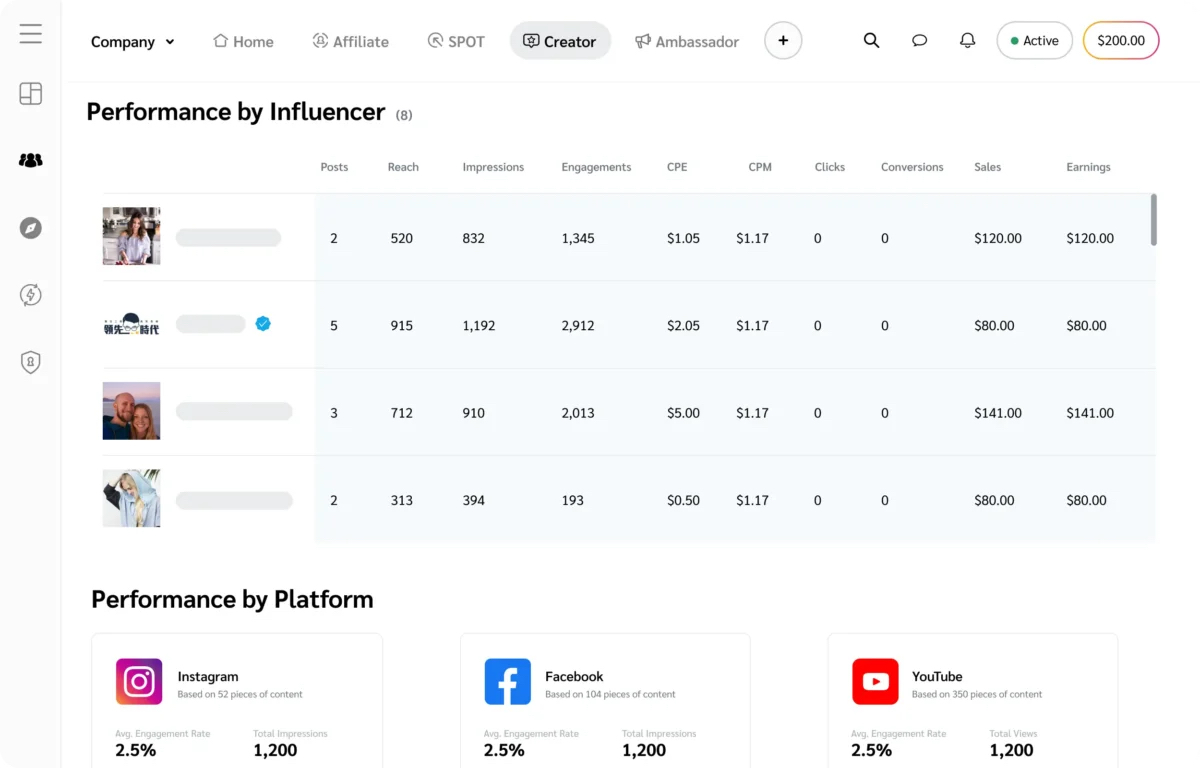 更重要的是,平台将创作者合作、推荐营销以及联盟营销等不同类型的合作模式整合在同一体系中,实现数据追踪、绩效指标和财务结算的统一管理,使品牌能够从单次合作逐步转向长期的合作伙伴生态运营。
