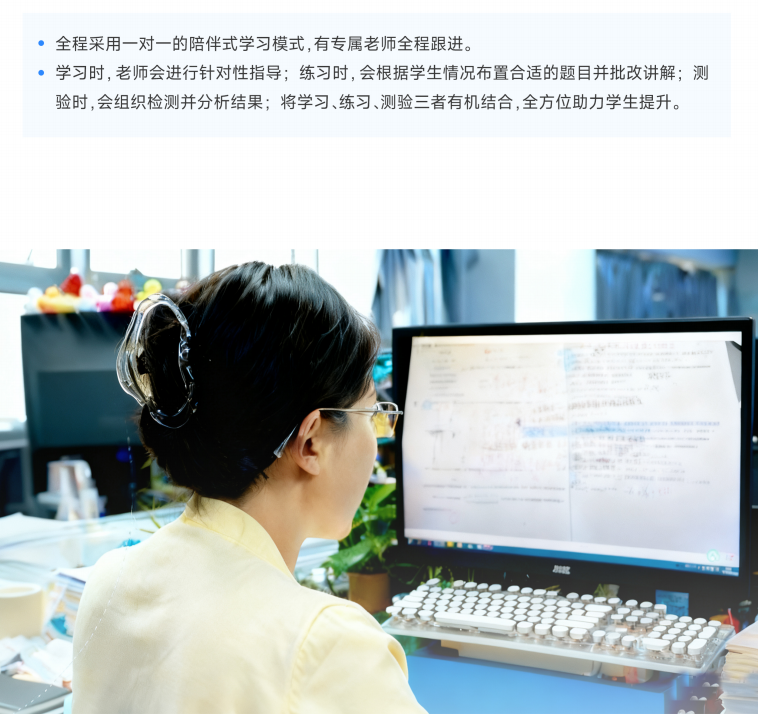 此外,完善的伴学服务也为学生的冲刺备考保驾护航。一对一专业伴学老师全程跟进,学习前,伴学老师结合学生自身学情,制定专属复习计划;学习过程中,针对学生的备考困惑、知识漏洞,及时提供针对性指导,避免问题堆积;学习后,定期开展检测,根据学生知识吸收情况及时调整复习方案。同时,专属班主任全程跟进复习进度,督促学生高效学习,并帮助学生缓解焦虑情绪,切实提升复习效率。