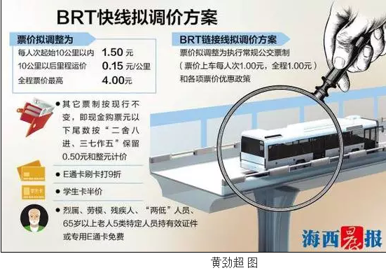 3.同时,BRT链接线的票价拟参照常规公交票制,调整为上车每人次1元,全程1元。