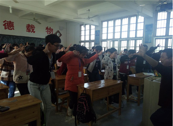 执教九年级音乐课的是来自新疆的“昌吉英才计划”培训班学员刘建勋,目前在福州十八中跟岗。他的课堂地域特色十足:用最美的视频画面给学生视觉冲击,让学生感受到了大美新疆。选取新疆歌舞中最典型的节奏和舞蹈动作,再配上他充满烤羊肉味的热情洋溢的语言,很快让满座师生都情不自禁的和他一起跳起了新疆舞蹈,让灾后的三溪校园沸腾了起来。
