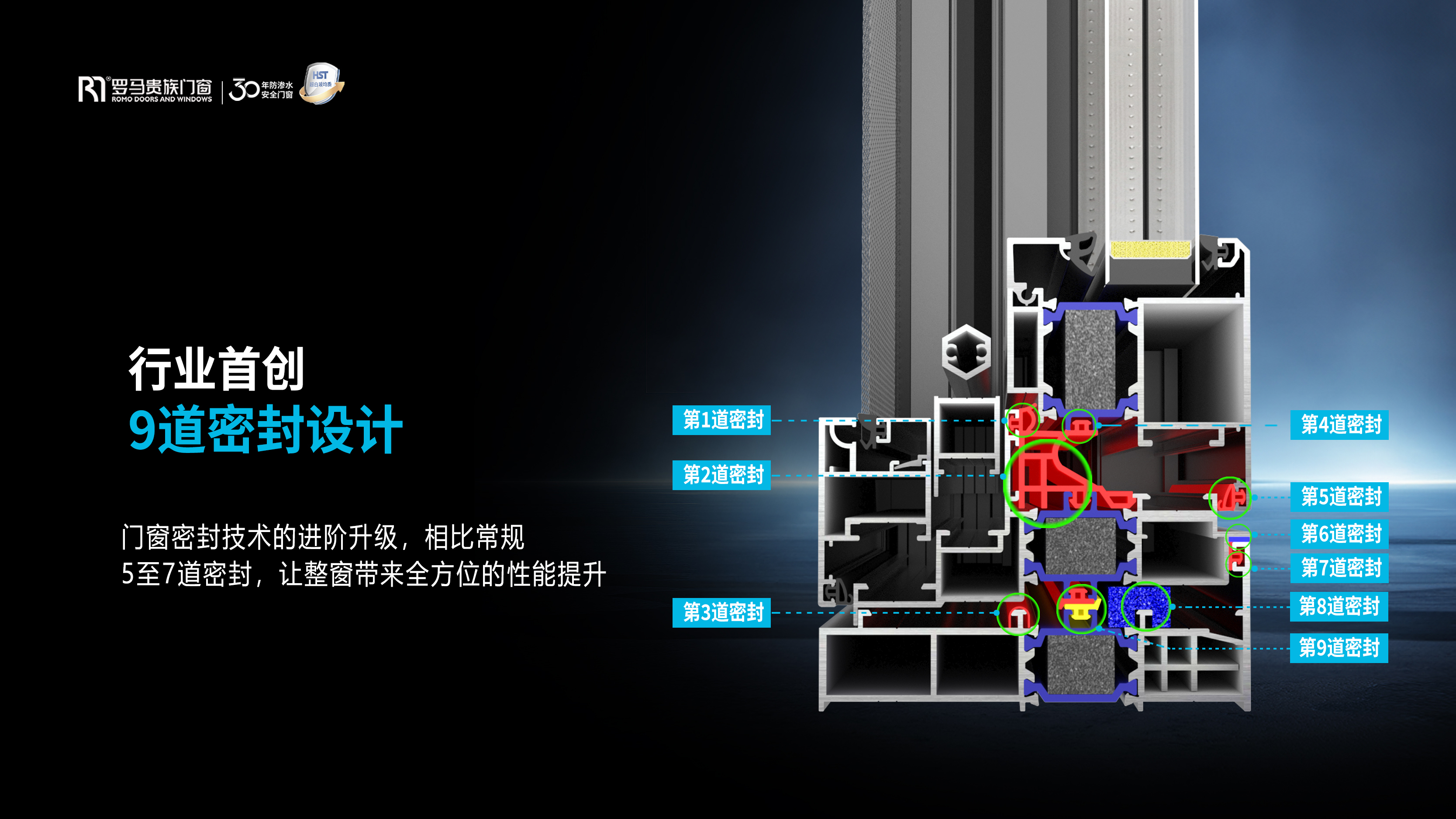 技术性能优势:在防渗水结构、保温隔热、抗风性、密封性及耐候性方面全面领先。2025 年 8 月行业首推 “超白均质玻璃”,打响玻璃反自爆第一枪;2026 年春季新品进一步升级,主副框间采用防水防风胶条、吸水棉与卡扣式密封胶条,彻底阻断雨水渗漏、隔绝空气对流与噪音。沿海系统窗均采用自研尼龙线特研胶条与沿海超耐候喷涂工艺,差异化优势明显。